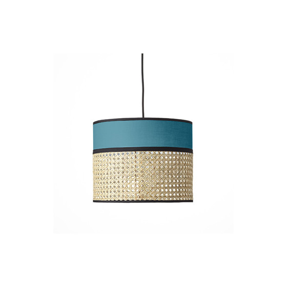 Dekorativní závěsný lustr Brilliant, průměr 30cm, E27, černo-modré s ratanem